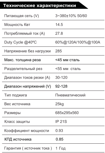 Аппарат для плазменной резки на 120А с гарантированной толщиной резки до 45 мм.